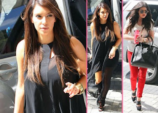The 31-year-old bombshell rocked a beautiful black dress with strappy heels while her younger sis donned red skinnies with a white tee.